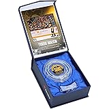 A new version of a letter “B” in black trimmed in gold with eight gold spokes within a black circle. Known as the Spoked-B logo.