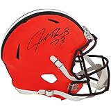 The updated helmet logo is reflective of today’s modern Cleveland, the design honors the past while evolving into the future. The iconic brown and white stripes stand tall over the orange helmet, a new orange color that matches the passion of the Dawg Pound. The new brown face mask represents the strength and toughness of Cleveland.