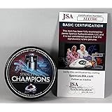 A wordmark "COLUMBUS BLUE JACKETS" in a circle on a blue and red ribbon. A silver and blue cannon in the center. A blue and silver star at the bottom with a blue, red and silver outline.